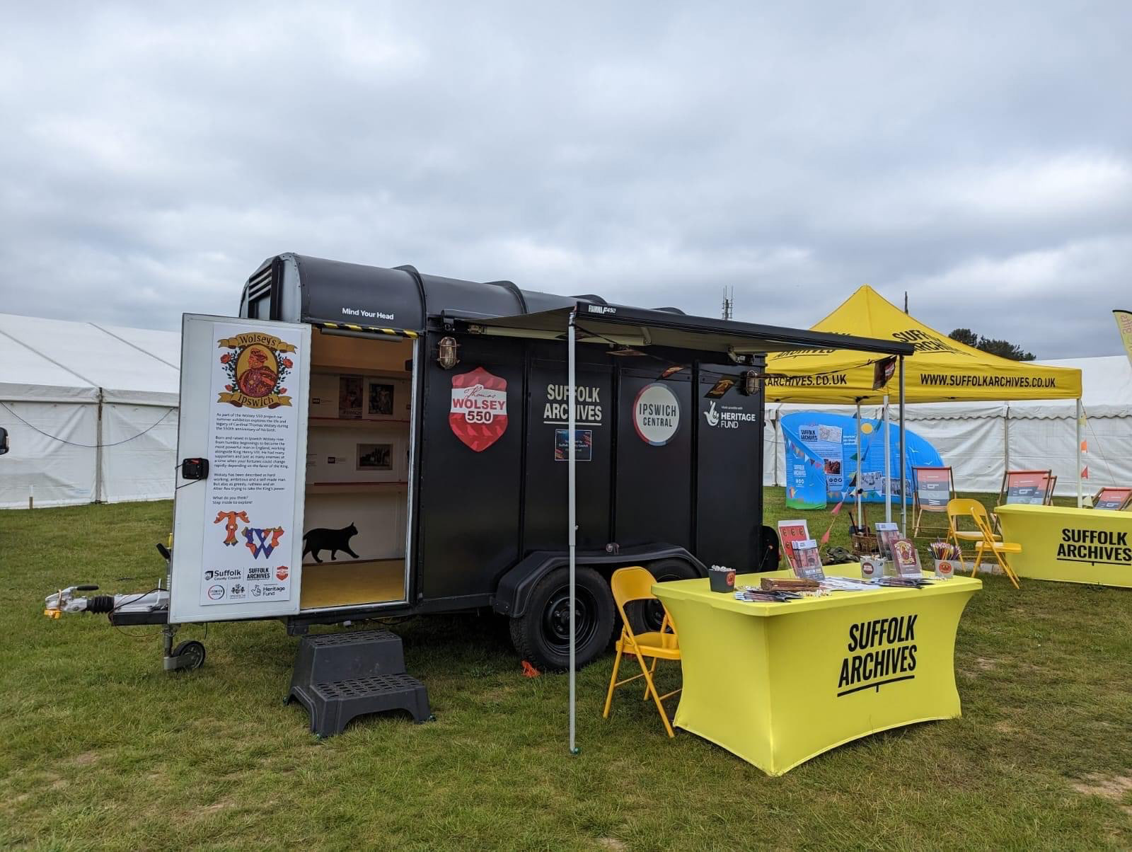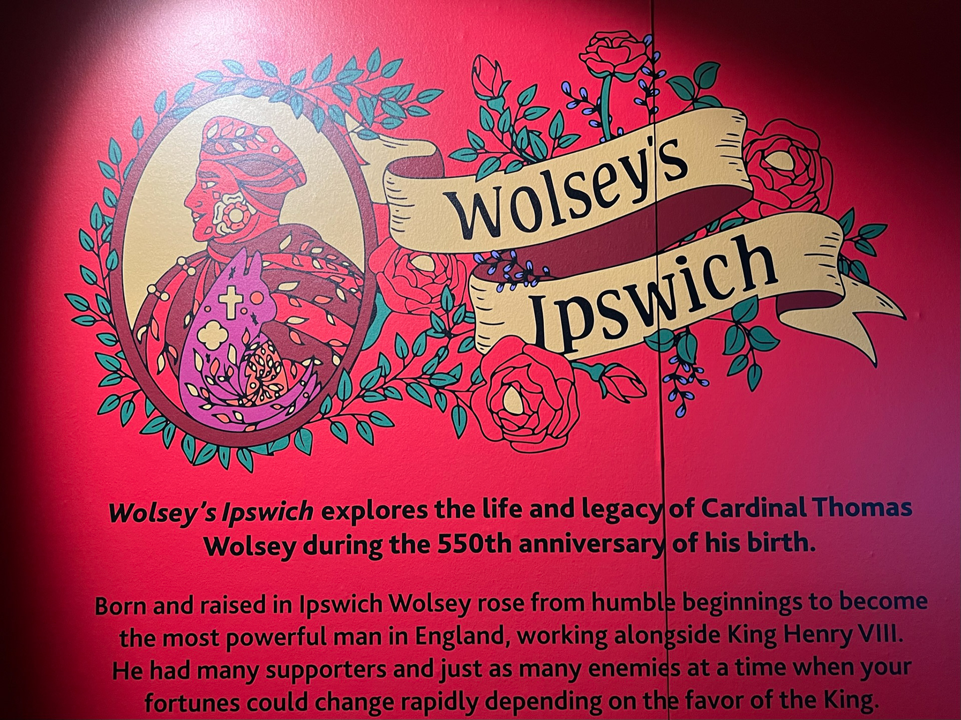 I had the opportunity to design promotional material for the 2023 summer exhibition Wolsey’s Ipswich, in collaboration with Suffolk County Council’s Wolsey550 project. My work included creating logos, flyers, posters, food menus, wall and window décor, and vinyl graphics for a touring promotional van. Using a bold Tudor-inspired block color style, the designs captured the historical essence of the exhibition while ensuring strong visual appeal across print and digital platforms